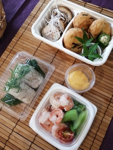 お持ち帰りはこんあ感じで盛りつけています。 未分類 2022.06.02 Seasonレッスン、お持ち帰りの方はこんな感じで盛りつけています。生のホタテは避けて海老を茹でたものに変更しています。ちょっとでも、試食の雰囲気もお持ち帰りして頂きたいなーと思ってあれこれ試してみました。好きな事だから楽しく工夫できます。