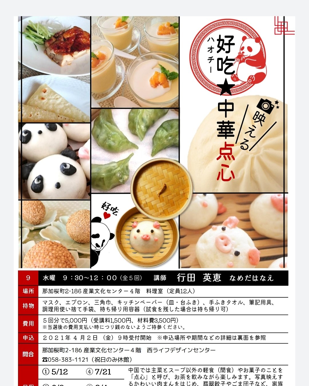 来月より各務原市の生涯学習・ライフデザインセンターにて『好吃!映える中華点心』講座を担当する事になりました。