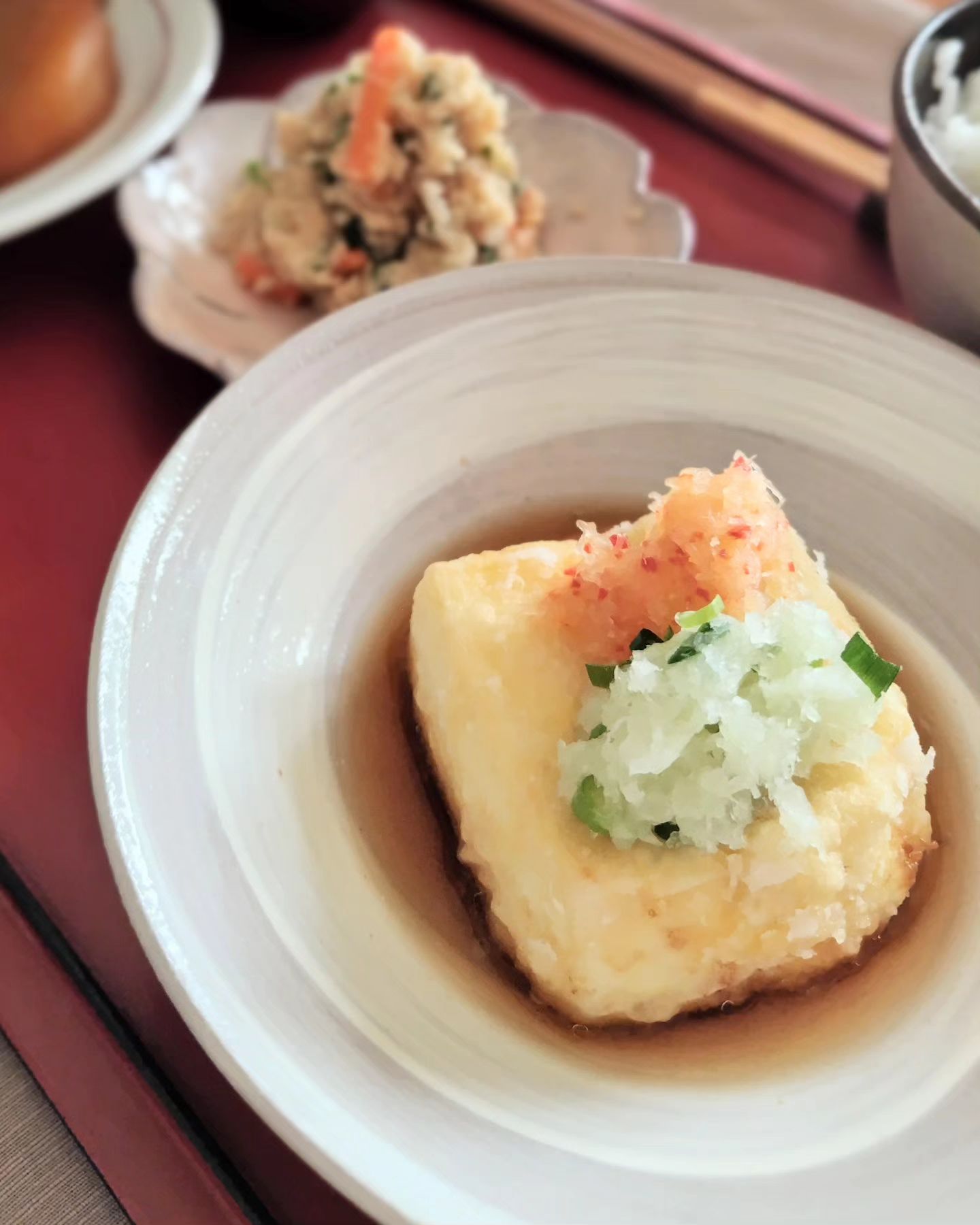 1月Dailyレッスン デイリーレッスンの様子 2024.01.23 ご参加ありがとうございます! 「揚げ出汁豆腐が家で作れるなんて!」木綿豆腐さえあれば、おもてなし料理にも使える料理ができちゃう。材料費もかからないし、下処理もほぼ無いし。覚えて損はないですよ!