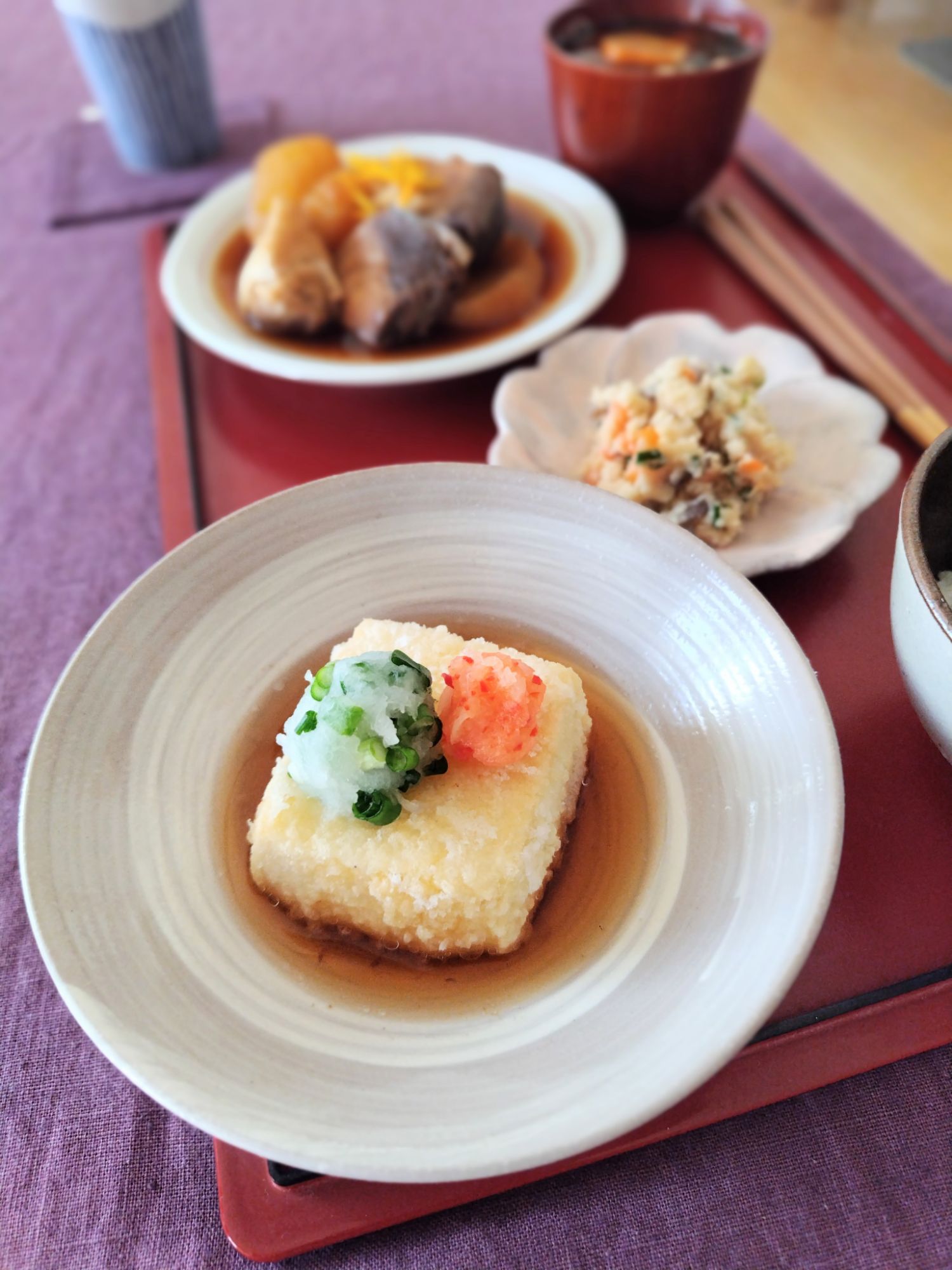 揚げ出汁豆腐・ぶり大根・卯の花