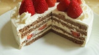 チョコとベリーの組み合わせが好きなのでベリーソースを忍ばせてます。見た目よりも軽いのでこちらも、あっという間に食べれるケーキです。夏には、紅茶シロップをたっぷり打って冷たーーく冷やして食べたいなと思います。ナッペのコツをお伝えしましたが練習...