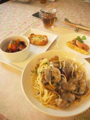 Dailyレッスン デイリーレッスンの様子 2023.05.16 今日もボンゴレレッスン。ニンニクと唐辛子が好きな生徒さんは増し増しで。ついでにパスタも 笑お写真、パスタが多めです♡ボンゴレはシンブルが故に一つ一つの素材や調味料が物をいう料理だと思います。私自身も、学びになりました。今年はアサリがちょっとお高いのが難点ですが復習兼ねて、忘れないうちに作ってみてくださいね。#料理教室#岐阜市料理教室 #岐阜料理教室 #料理教室岐阜市 #料理教室岐阜 #パスタ