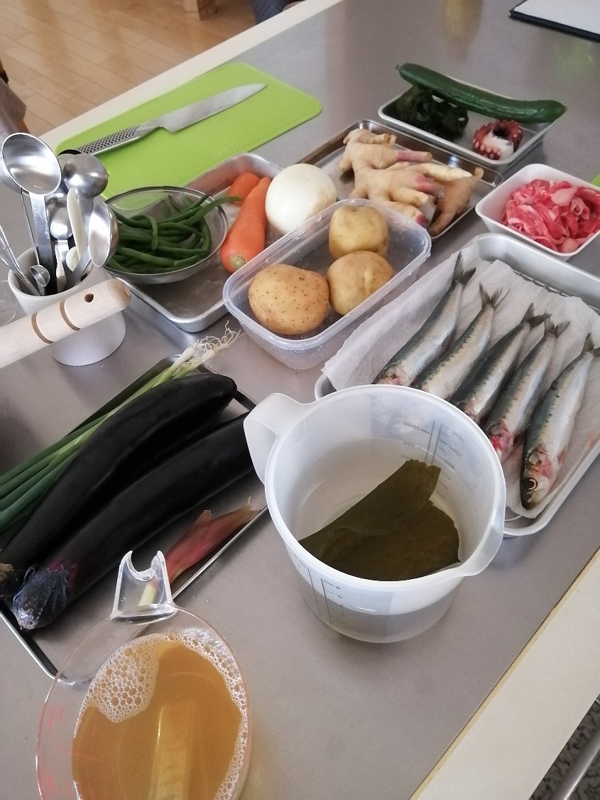 Dailyレッスン 未分類 2021.06.05 今月のDailyレッスンが始まりました!今日は一足早くって事でまだまだ若い生徒さんが参加です。先月から教室に通ってくださってますがすごーく熱心で、前回のビビンバも復習してくださったそう。嬉しいなー!全力で応えたいと思う私です。食材色々。今回は、かつおだし・昆布出汁を使います。早く生徒さん、来ないなーって思いながら待っています^^「自分で使った肉じゃがと全然違う!おいしい~」って驚かれていました。〇肉じゃが〇鰯のつみれ汁(手開きにします)〇焼き茄子or蒸し茄子〇胡瓜とタコの胡麻酢〇新ショウガの炊き込みンご飯レシピももちろん大事だけどもっと大事なポイントをお伝えしています。煮汁をたくさん残して煮てしまうと結局、煮汁を捨てる=調味料を捨てるって事になり、とても勿体ない。コツを取り入れるとこんなに調味料が少なくても肉じゃが作れるんだ!って驚かれる方もいます。こちらのレッスンは6月22日(火曜日)のみ残席が1席ありますよレッスンのお申し込み・ご質問は こちらから お願いします。教室公式Lineからでもご予約可能です。↑友達追加していただくと、レッスンのご案内がいち早く届きます。ぜひご登録ください♪